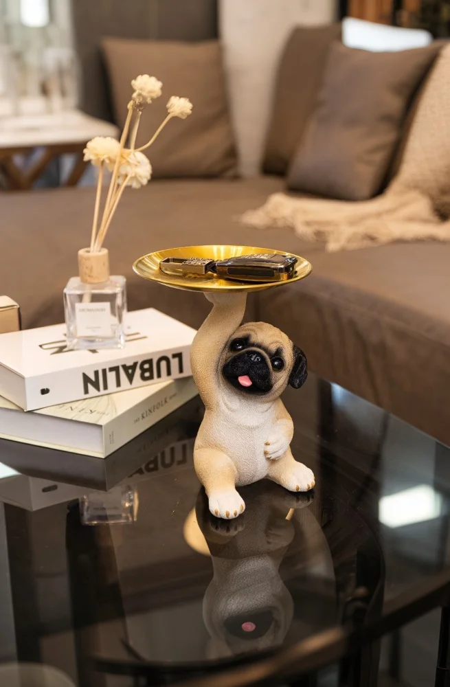 Dog-Themed Candy Dish – Adorable Pug Figure Plate for Entryway & Office