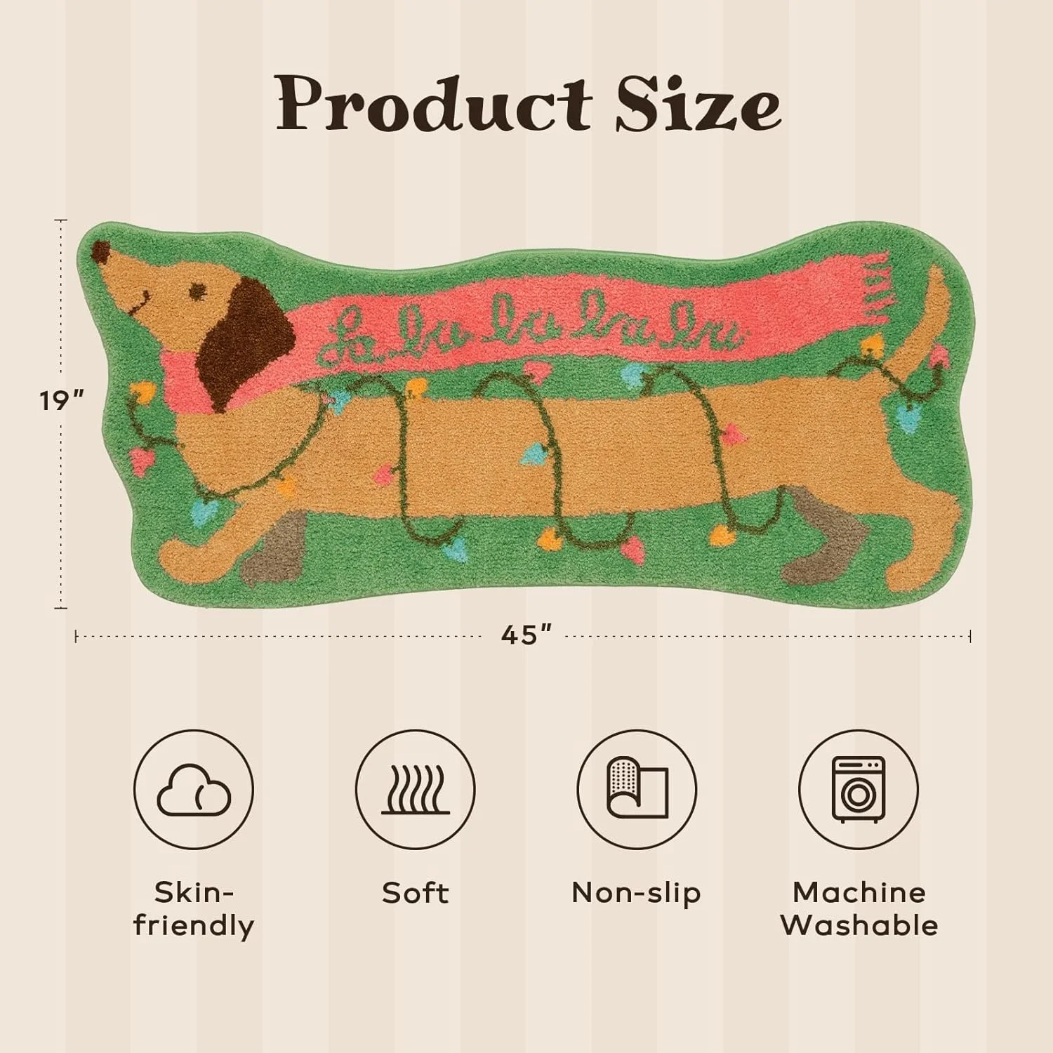 Its strong non-slip backing ensures safety on smooth floors, while the machine-made technique guarantees durability, fine stitching, and long-lasting quality. Whether placed bedside, in the living room, or in the entryway, this cute dachshund-themed carpet adds warmth, comfort, and festive style to any space.